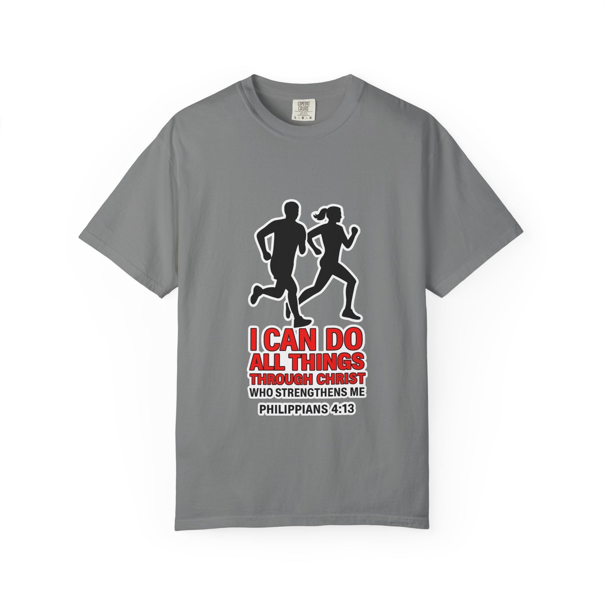 Christian Running T-shirt — "I Can Do All Things with Christ" Scripture Tee