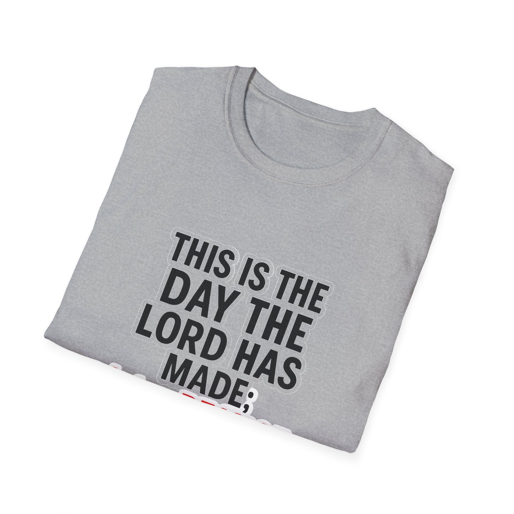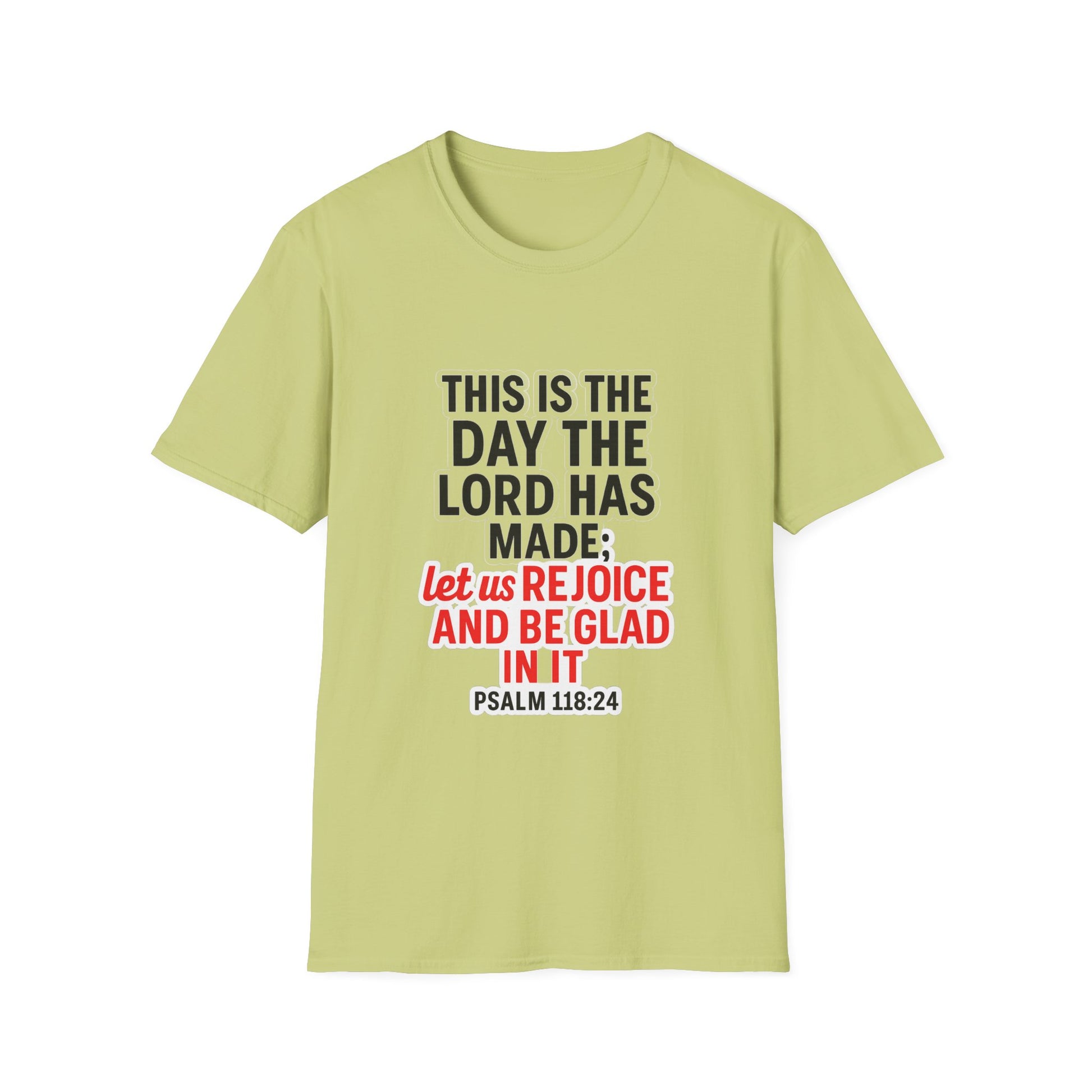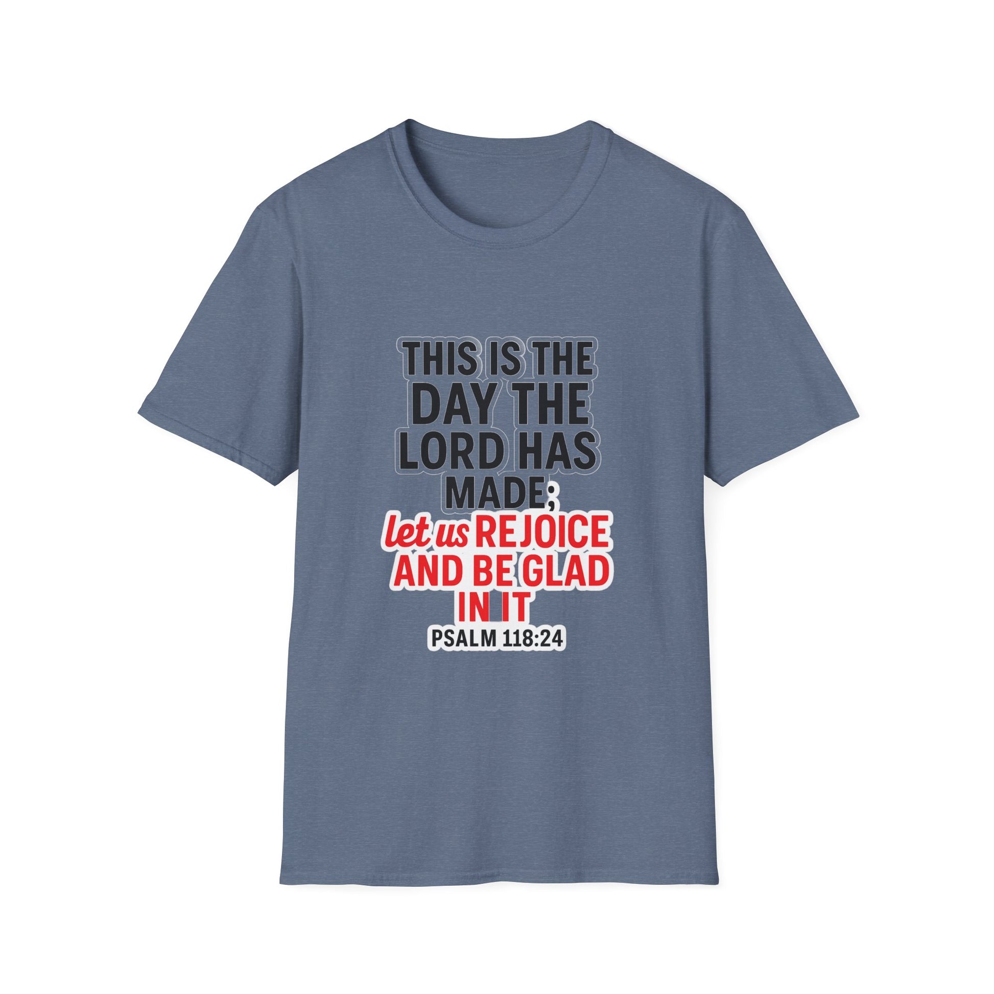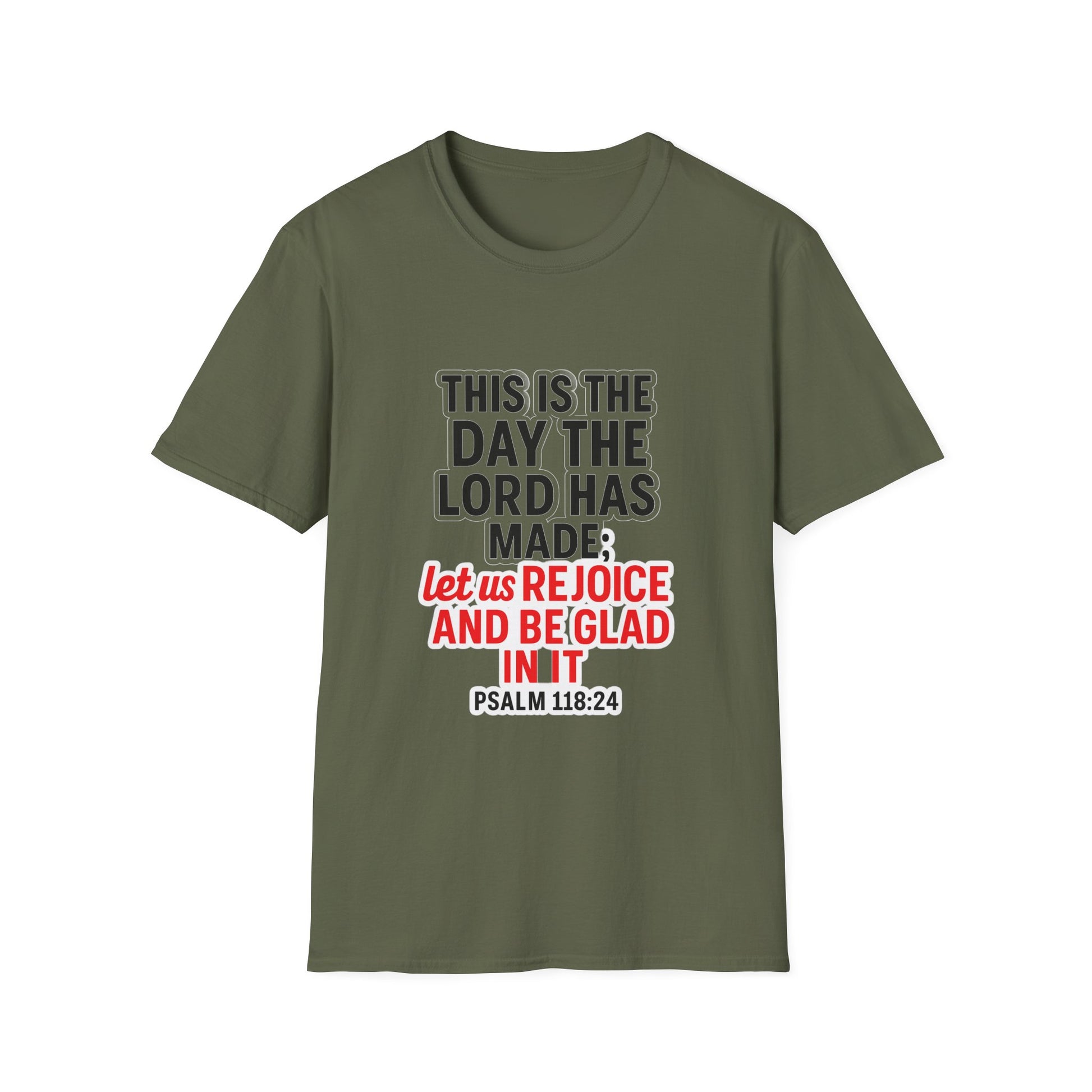 A lightweight, breathy tee that speaks faith simply and boldly. The clean crew neckline and classic fit let the message take center stage: a scripture reminder to rejoice in the day the Lord has made. Printed on smooth, ring-spun cotton, the block lettering in black with a warm red accent reads clearly from a distance yet feels gentle up close. Wear it to morning worship, volunteer days, fellowship gatherings, or quiet moments of gratitude — it layers easily under a cardigan or stands on its own with jeans. The tear-away label and stabilized shoulders keep it comfortable through repeated wears and washes. Built with responsibly sourced cotton and Oeko-Tex certification, it’s a thoughtful everyday option for believers who want a quiet, confident testimony on their sleeve.