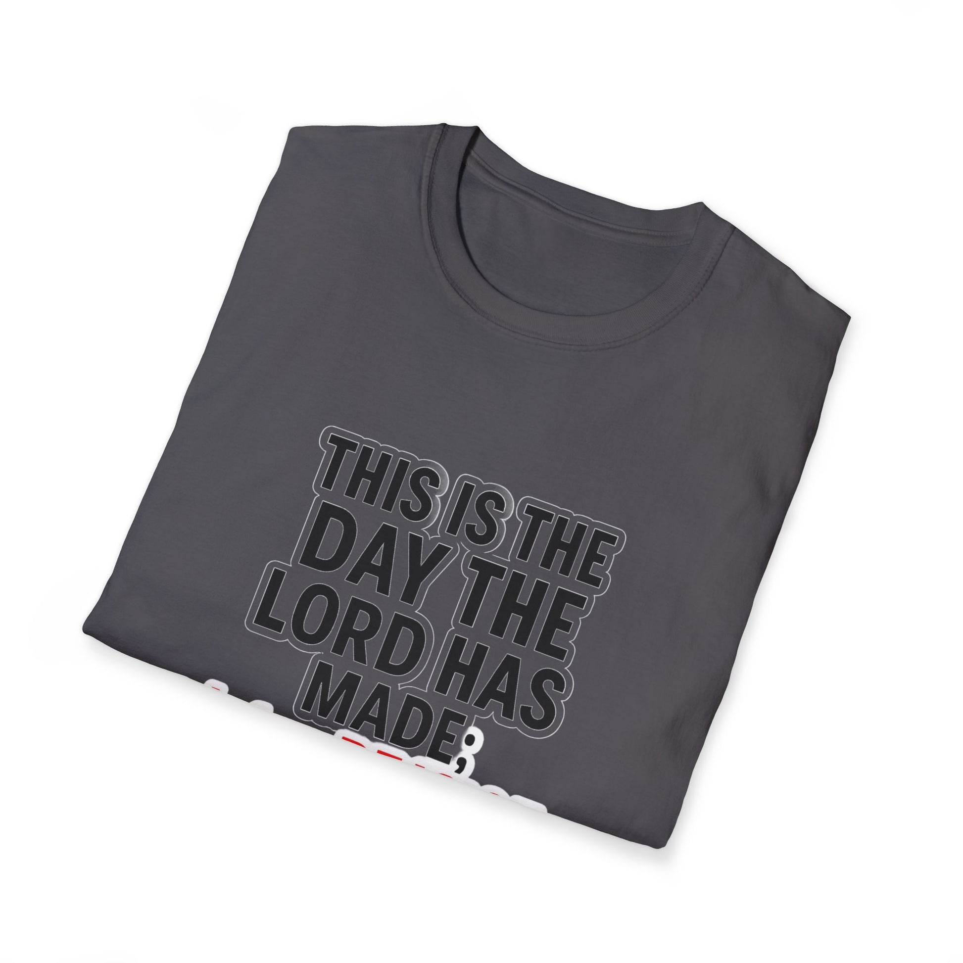 A lightweight, breathy tee that speaks faith simply and boldly. The clean crew neckline and classic fit let the message take center stage: a scripture reminder to rejoice in the day the Lord has made. Printed on smooth, ring-spun cotton, the block lettering in black with a warm red accent reads clearly from a distance yet feels gentle up close. Wear it to morning worship, volunteer days, fellowship gatherings, or quiet moments of gratitude — it layers easily under a cardigan or stands on its own with jeans. The tear-away label and stabilized shoulders keep it comfortable through repeated wears and washes. Built with responsibly sourced cotton and Oeko-Tex certification, it’s a thoughtful everyday option for believers who want a quiet, confident testimony on their sleeve.