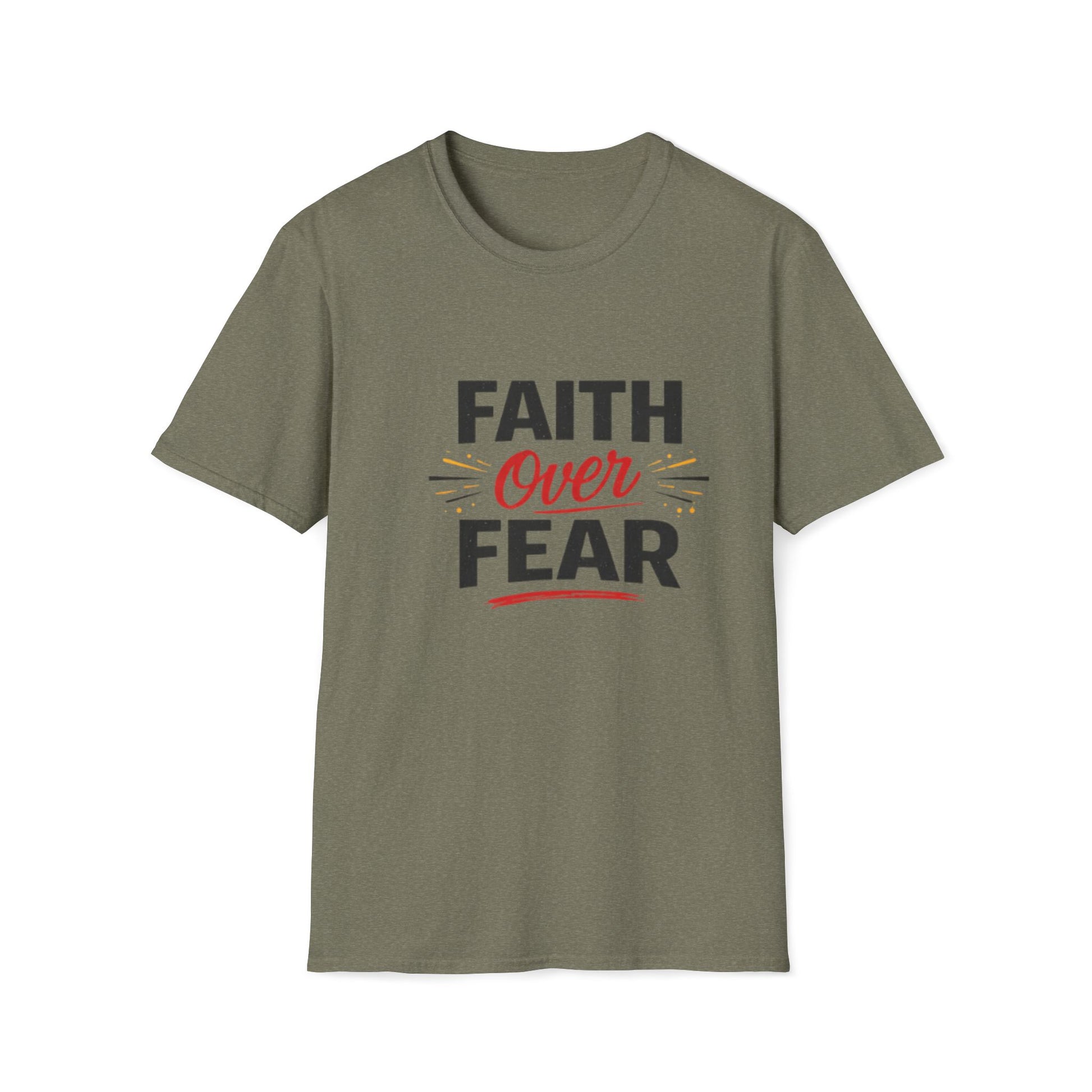 Lean into quiet courage with this soft, breathable tee that speaks without shouting. The clean “Faith over Fear” design sits centered on a lightweight, ring‑spun cotton fabric that drapes easily from morning coffee to evening small groups. It feels gentle against skin, holds its shape thanks to a ribbed collar and shoulder tape, and keeps a smooth print surface for the bold, two‑tone lettering. Wear it to encourage someone, to steady yourself before a big step, or to add a hopeful line to a layered, everyday look.