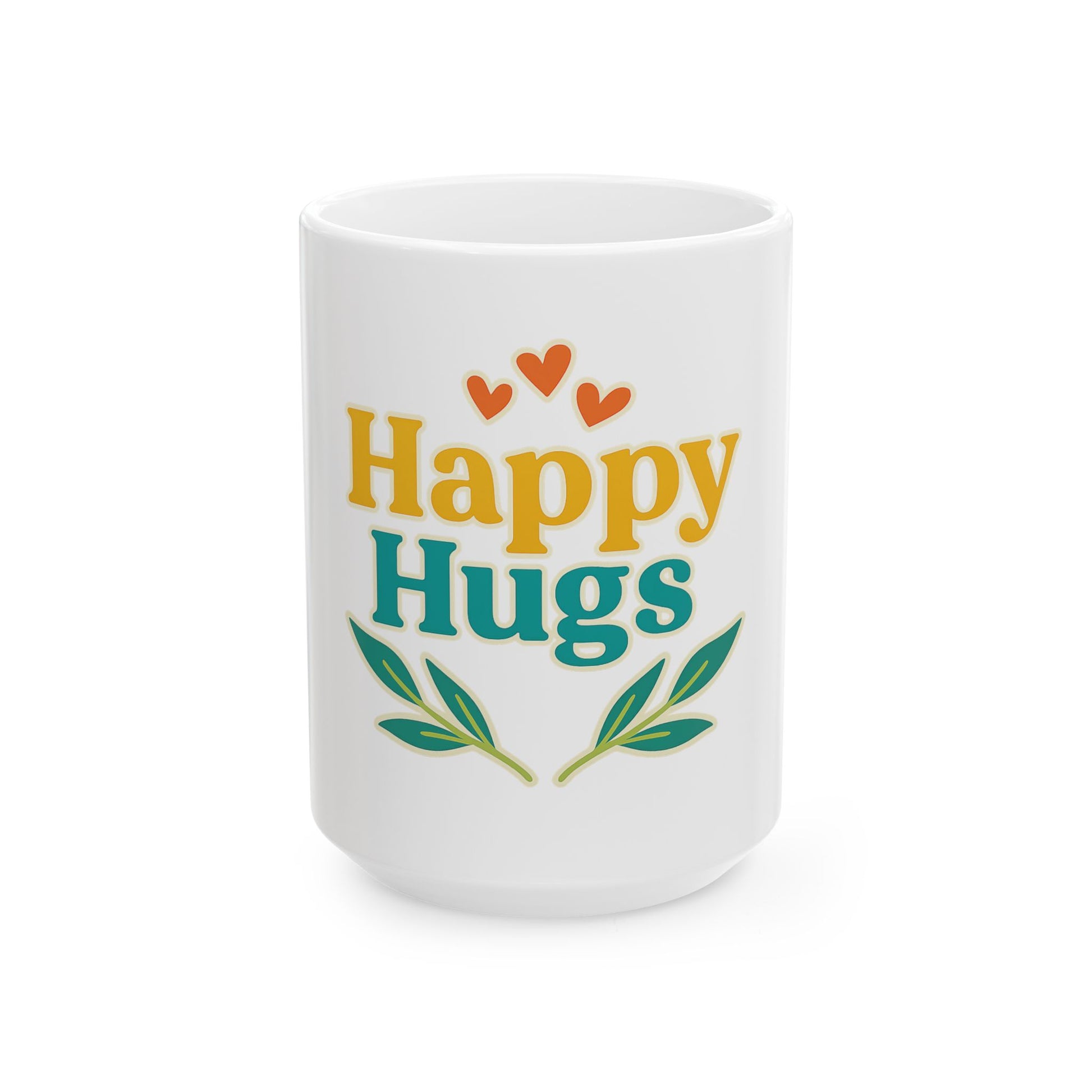 Happy Hugs Ceramic Mug — Cheerful Floral Coffee Cup (11oz & 15oz)