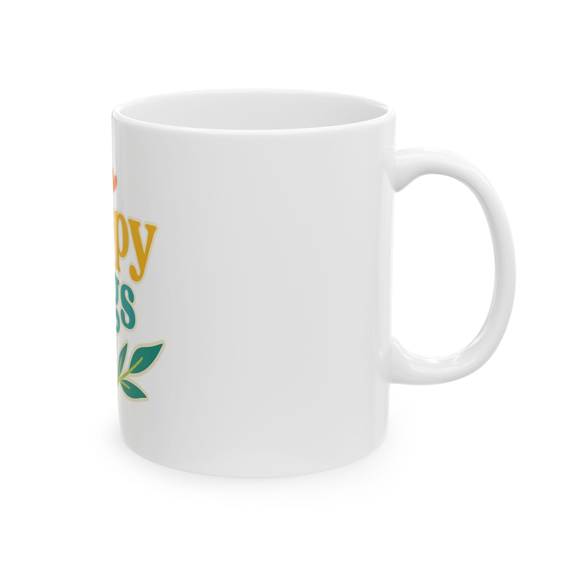 Bright, cheerful ceramic mug that brings a little warmth to slow mornings and busy desks. The playful “Happy Hugs” lettering sits between soft leaf illustrations and tiny hearts, a small daily reminder to breathe, smile, and share a kind moment. Smooth glossy finish makes the colors pop and keeps the design looking clean through regular use. Comfortable C-handle fits most hands; choose 11oz for compact sips or 15oz for longer refills. Lead- and BPA-free, microwave- and dishwasher-safe, this mug is ready for whichever ritual starts your day — a quiet coffee, an afternoon tea break, or a shared laugh with a friend.