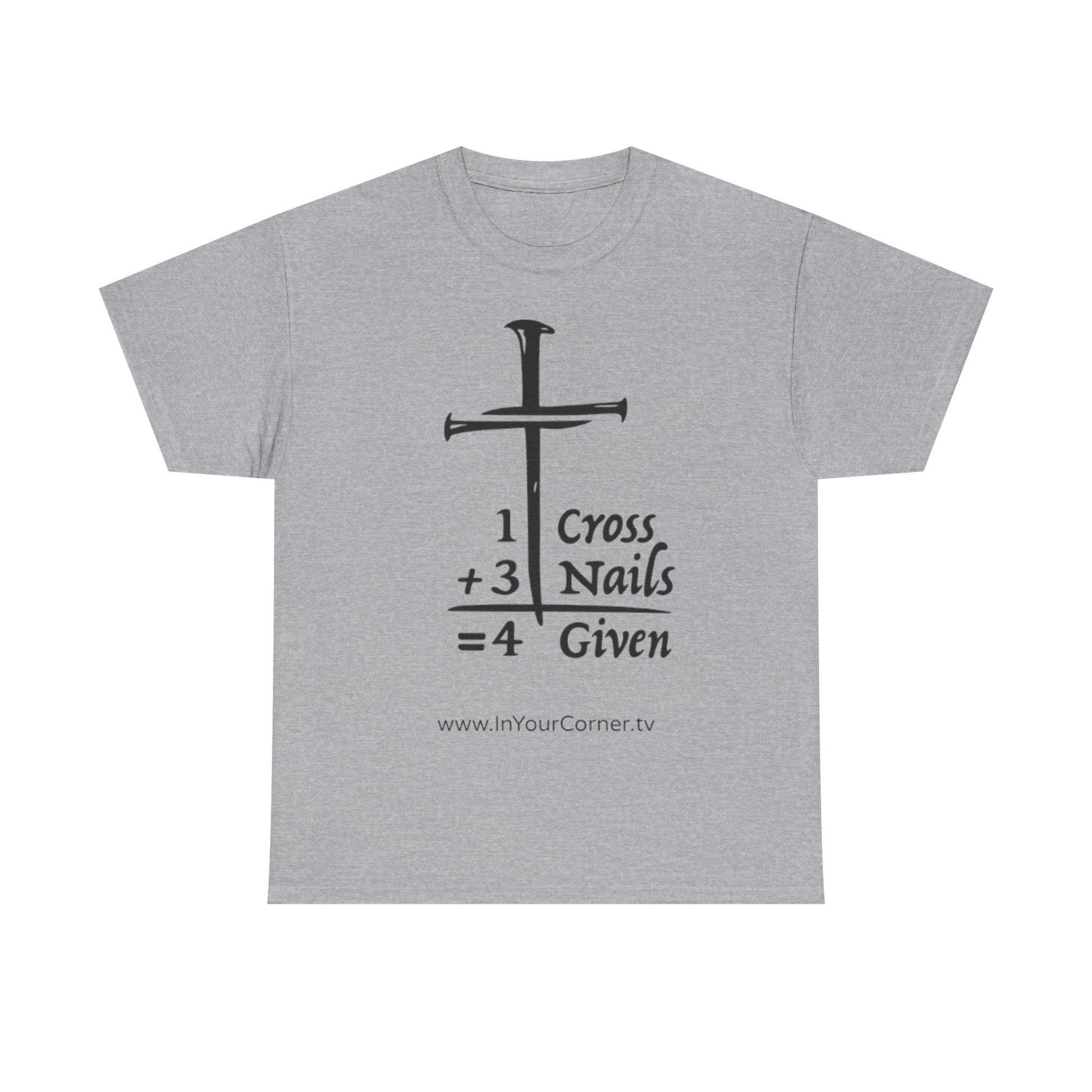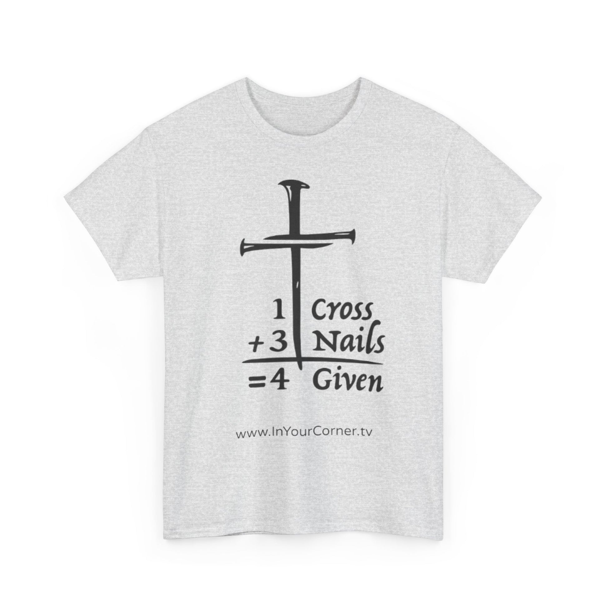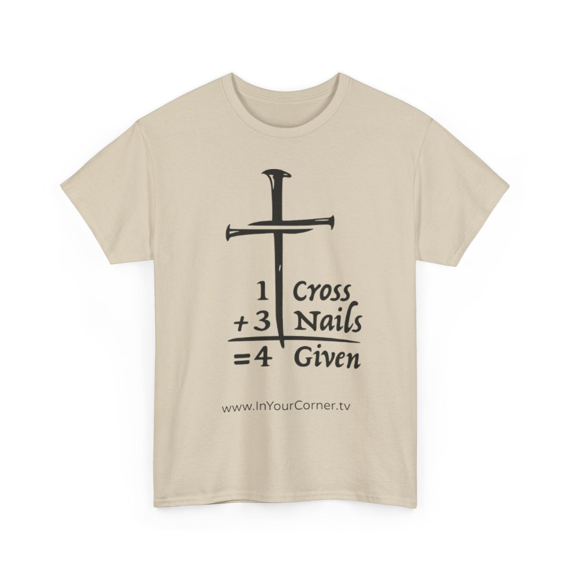 Carry a clear, quiet witness with this faith tee. The graphic — 1 Cross + 3 Nails = forgiven — speaks in simple symbols, a bold reminder of grace that doesn’t need words. Lightweight but sturdy cotton sits close to the skin; the classic crew neck and relaxed fit make it easy to layer under a sweater for chilly mornings or wear alone when the sun is out. Wear it to small group meetings, volunteer days, church socials, or whenever you want a gentle, confident sign of what you believe. The print’s clean lines read well from a distance and the soft natural tone with subtle flecks gives the shirt a lived-in, honest feel.